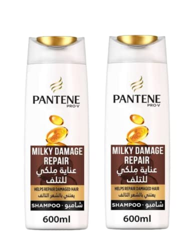 Pantene - شامبو برو-ڤي ميلكي لاصلاح الشعر التالف من بانتين - عبوة من قطعتين (2 × 600 مل)
