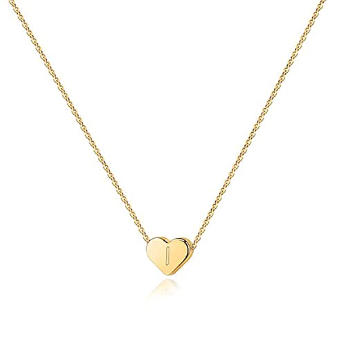 PAVOI - قلادة على شكل قلب صغير مطلية بالذهب عيار 14 قيراط | قلادة انيقة للنساء | قلادة على شكل قلب بحروف شخصية | منزلق قابل للتعديل