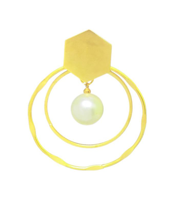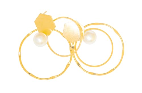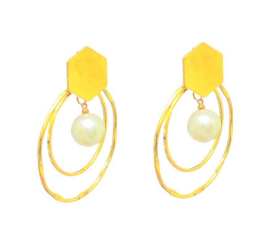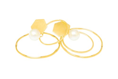 Generic - حلقان دائرية من اللؤلؤ طقم للنساء، عبوة من قطعتين - لون ذهبي