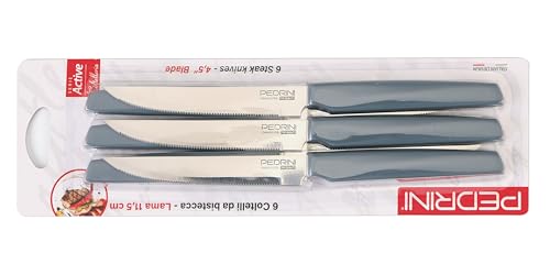 PEDRINI - طقم سكاكين مطبخ من الفولاذ المقاوم للصدأ من 6 قطع من بيدريني، رمادي غامق، 04GD272