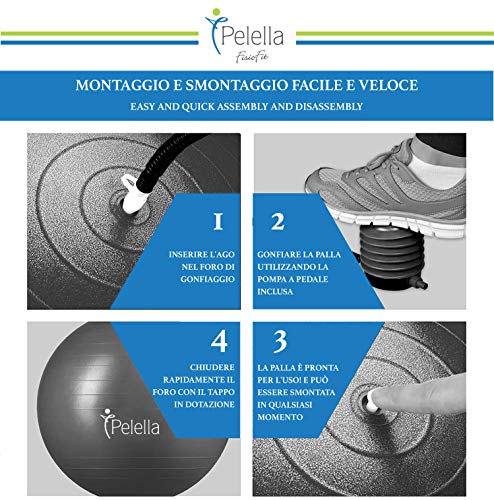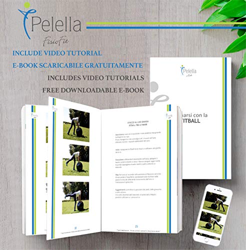 Pelella Fisiofit - كرة اللياقة البدنية بيليلا 55 و65 سم مع فيديو تدريبات إلكتروني يشمل الجمباز، البيلاتس، اليوغا، التوازن العلاجي، أدوات الحمل، والجيم المنزلي