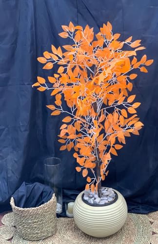 Generic - شجرة بينجمينا صناعية بواقعية عالية – ديكور داخلي أنيق وطبيعي (برتقالي)