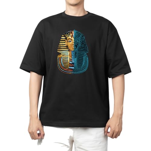 Generic - تيشرت مزين بطابع الحضارة المصرية بطباعة الأهرامات والمتحف المصري الفرعوني، لون أسود 16