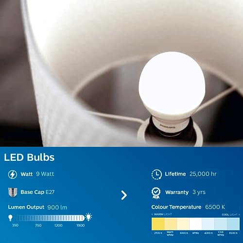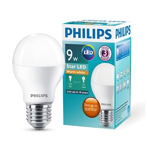 Philips - لمبة ستار ليد E27 والتي تستهلك الطاقة بمقدار 9 واط ودرجة حرارة لون 6500 كلفن وضوء ساطع 900 لومن وقاعدة من فيليبس (3 قطع، هاديء)، أبيض