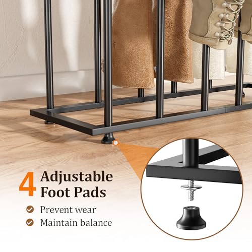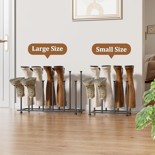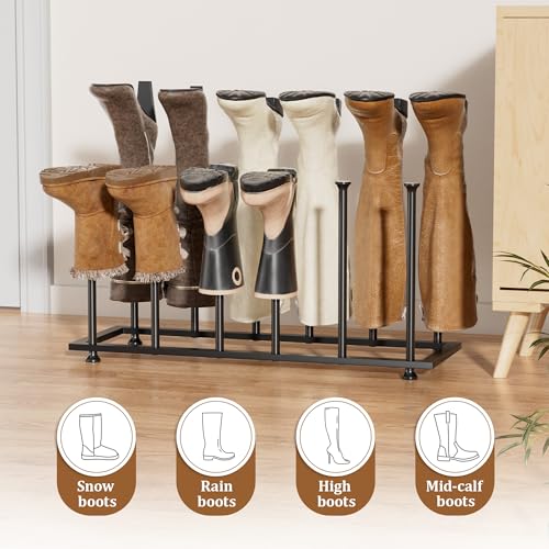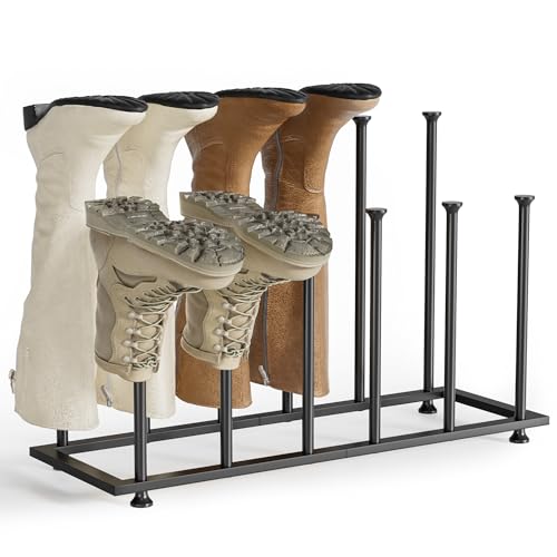 - لأحجام الأحذية المتعددة: مصمم لحمل أنواع مختلفة من الأحذية ذات الرقبة الطويلة، بما في ذلك الأحذية الطويلة وأحذية العمل وأحذية المطر، يستوعب هذا الرف متعدد الاستخدامات ما يصل إلى أربعة أزواج من الأحذية ذات الرقبة الطويلة، مما يبقيها بعيدة عن الأرض ويتم صيانتها جيدًا.