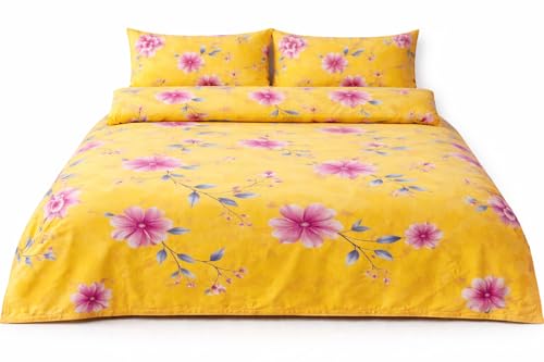 Generic - طقم ملايات سرير بتصميم زهور وردية على خلفية صفراء مقاس 240*250