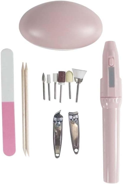 Generic - طقم عناية الأظافر والأقدام، وردي، يتضمن مبرد كهربائي، قصافة أظافر، مبرد، عصا دفع الجلد، 6 رؤوس طحن، حافظة تخزين