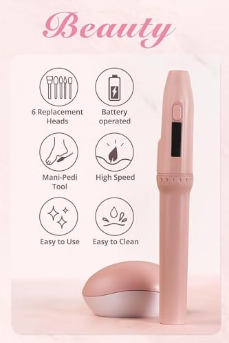 - مبرد كهربائي متعدد الاستخدامات: يأتي مع 6 رؤوس طحن قابلة للتبديل لتشكيل وتنعيم وتلميع الأظافر وإزالة الجلد الميت من القدمين بسهولة وفعالية