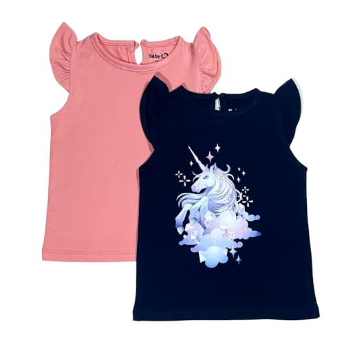 Baby Co. - تيشرتات بلون زهري وتصميم وحيد القرن عبوة من قطعتين للفتيات الرضع