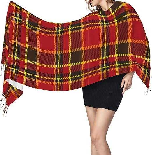 Generic - سكارف صوف منقوش لايام الكريسماس، احمر واصفر واسود، نمط تارتان، 180 سم × 30 سم