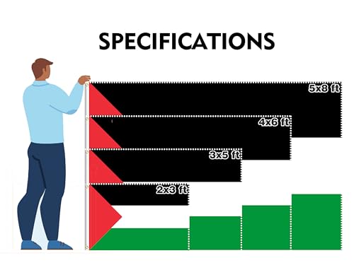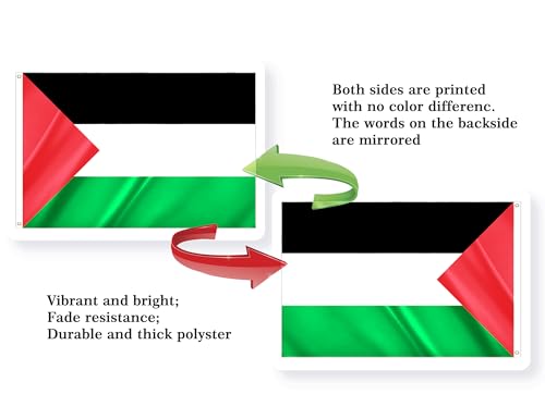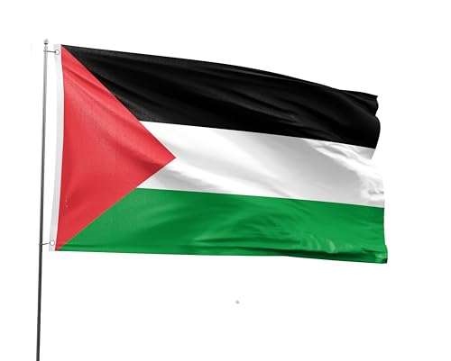 PLAIEI - علم فلسطين من بلايي مقاس 3 × 5 قدم، علم وطني فلسطيني مطبوع من البوليستر 100D مع حلقتين للمهرجانات ذات الطابع الفلسطيني والمناسبات والمسيرات وديكور الحفلات