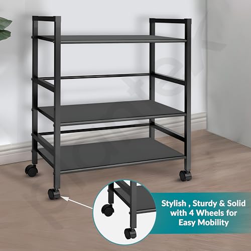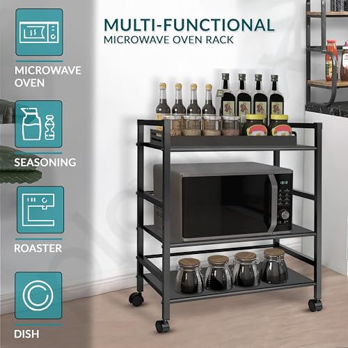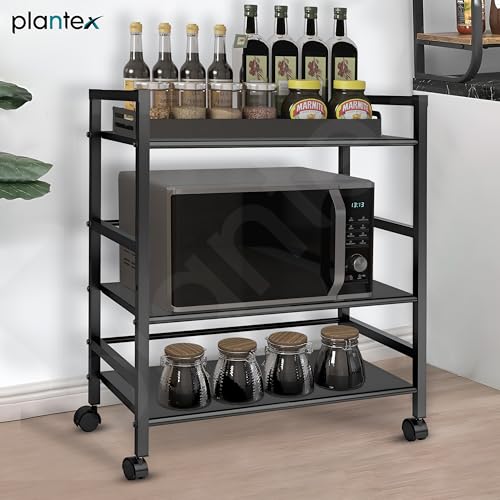 Plantex - حامل فرن وميكروويف معدن فاخر من 3 طبقات من بلانتكس، عربة مطبخ بعجلات / حامل ميكروويف/ منصات متعددة لتخزين إضافي/ رف بارتفاع قابل للتعديل / موفر للمساحة / رف متعدد الأغراض للتخزين (لون أسود)