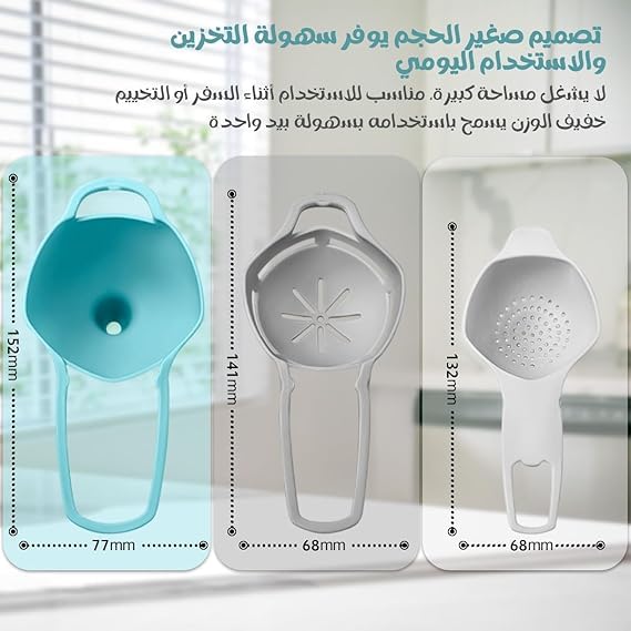- ٢) أبعاد مثالية: المصفاة الأولى ٧٧ ملم، والثانية ٦٨ ملم، والثالثة ٦٨ ملم، مما يجعلها مناسبة للاستخدام اليومي