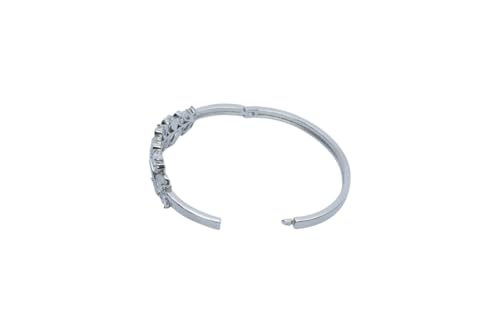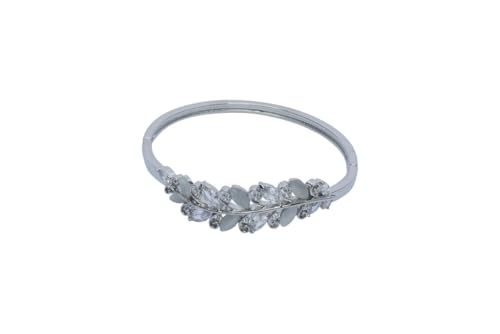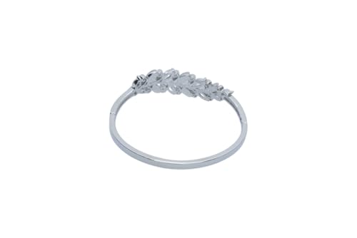 Generic - سوار حلقي بمفصلات من البلاتين مع اوراق الغار واحجار شفافة للنساء - فضي