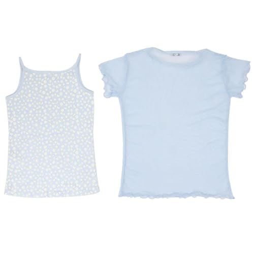 Playmore - بلوزة شبكية بدون اكمام للجنسين بلون بيبي بلو لعمر 10-11 سنة، ابيض