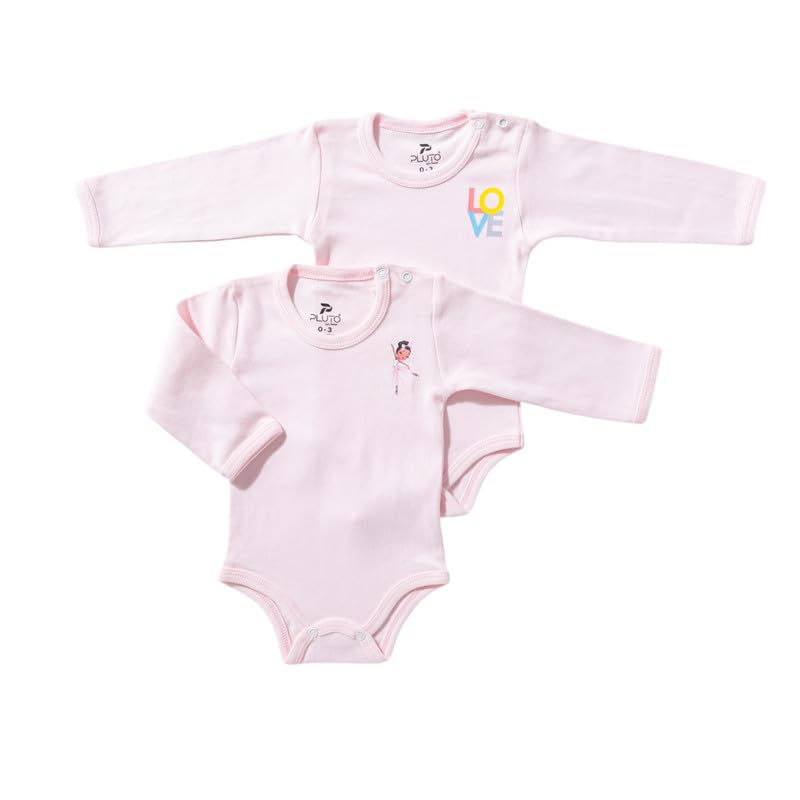 PLU2 Kids - طقم سالوبيت بكباسين قطن طويل بدون اكمام للبنات البيبي من بلو2، قطعتين - بينك فاتح