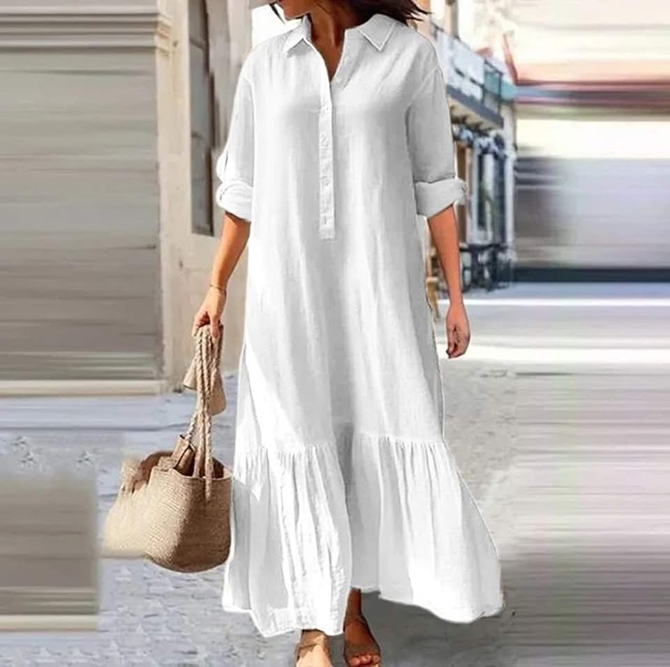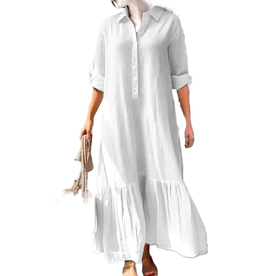 Generic - فستان قطن فسكوز طويل بأكمام طويلة، أبيض، مقاس كبير