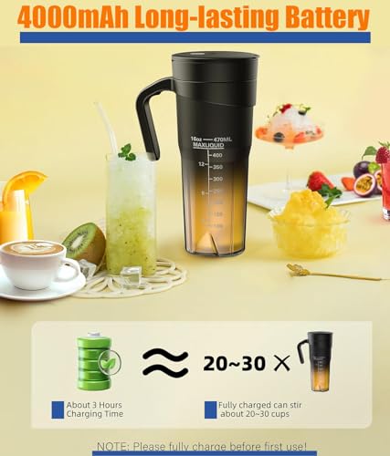 • 【بطارية قابلة لإعادة الشحن وعمر طويل】هذا الخلاط المحمول القابل لإعادة الشحن ببطارية مدمجة بسعة 4000 مللي أمبير في الساعة ومنفذ شحن USB، يمكن للخلاط المحمول القابل لإعادة الشحن عبر USB المزج 20-30 مرة بشحنة كاملة واحدة. ويمكنك شحنها عن طريق الباور بانك أو الكمبيوتر أو مصادر طاقة USB الأخرى.