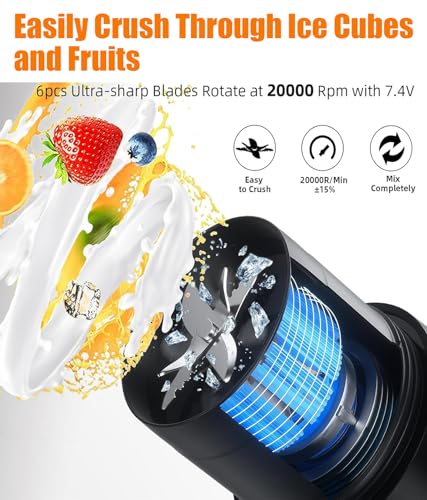 • 【خلاط محمول للمخفوقات والسموثي】: يمكن للشفرات الست المصنوعة من الستانلس ستيل بسعة 4000 مللي امبير في الساعة تشغيل محرك 7.4 فولت وسرعة 18000 دورة في الدقيقة، حتى يتمكن الخلاط الشخصي من تحضير العصائر والعصائر المرغوبة في 30 ثانية. أو يصبح تالفًا أو مفقودًا.