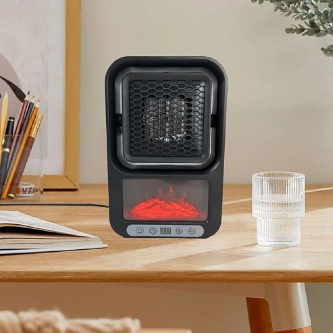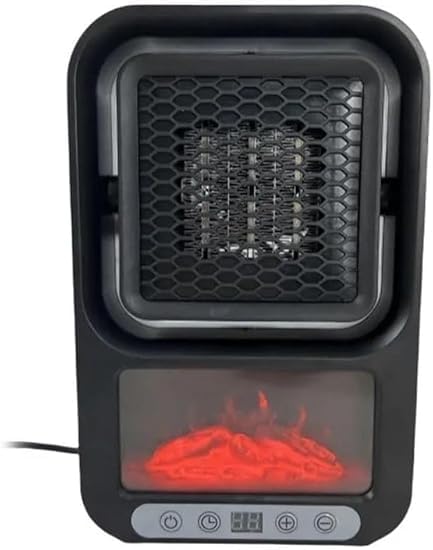 Generic - دفاية كهربائية محمولة دوارة 180 درجة مع ريموت كنترول، مدفئة ديكورية للمنزل والمكتب مع اضائة داخلية ومقبض من الجلد، موزع هواء ساخن مع مؤقت حتى 12 ساعة
