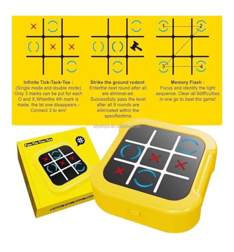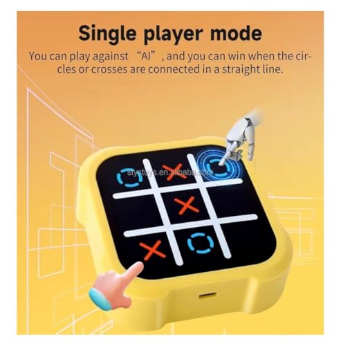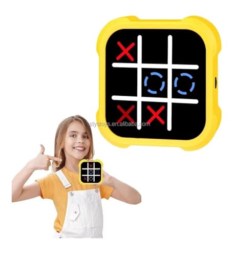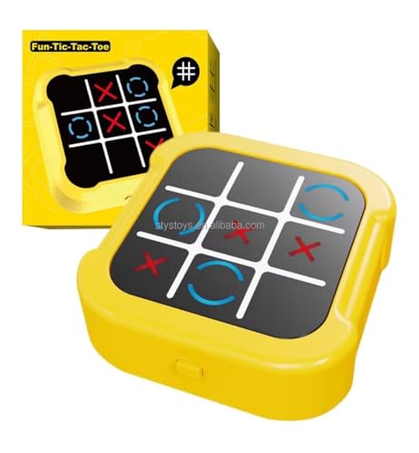 لعبة تيك تاك تو الإلكترونية المحمولة، إطار أصفر مع شاشة سوداء، وضع لاعب واحد ضد الذكاء الاصطناعي، لعبة عائلية استراتيجية للأطفال