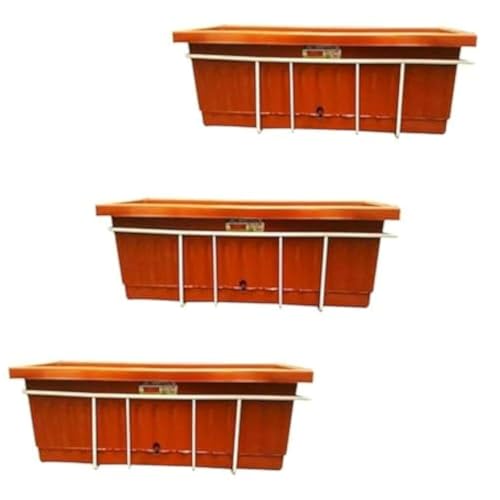OVA - مجموعة حوض للزراعة مقاس60في20 بحامل معدني للبلكونة - 3 قطع، بلاستيك، من أخرى , بني