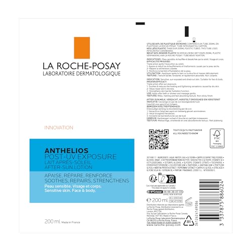 La Roche-Posay - لوشن انثيليوس بعد التعرض لأشعة الشمس فوق البنفسجية، يهدئ البشرة وينعشها ويرطبها، غني بالجلسرين والماء الحراري، لجميع أنواع البشرة، 200 مل، من لاروش بوزيه
