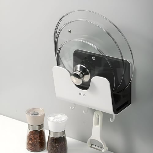 generic - تخزين غطاء الوعاء - قم بتحسين مساحة تخزين مطبخك مع حامل غطاء الوعاء المبتكر المثبت على الحائط والذي يزيل الفوضى، ويوفر خيارات استخدام متعددة، وسهل التركيب والإزالة حسب الحاجة.