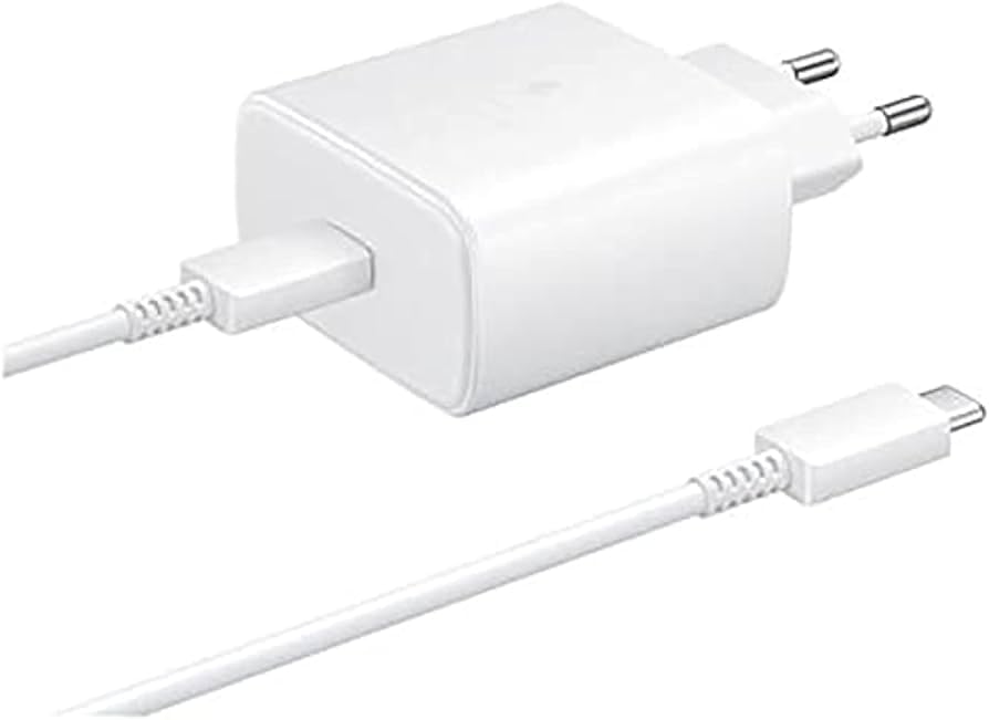 - شاحن بقوة (45) WATT, يدعم PPS مع كابل نوع سي الى نوع سي لون ابيض