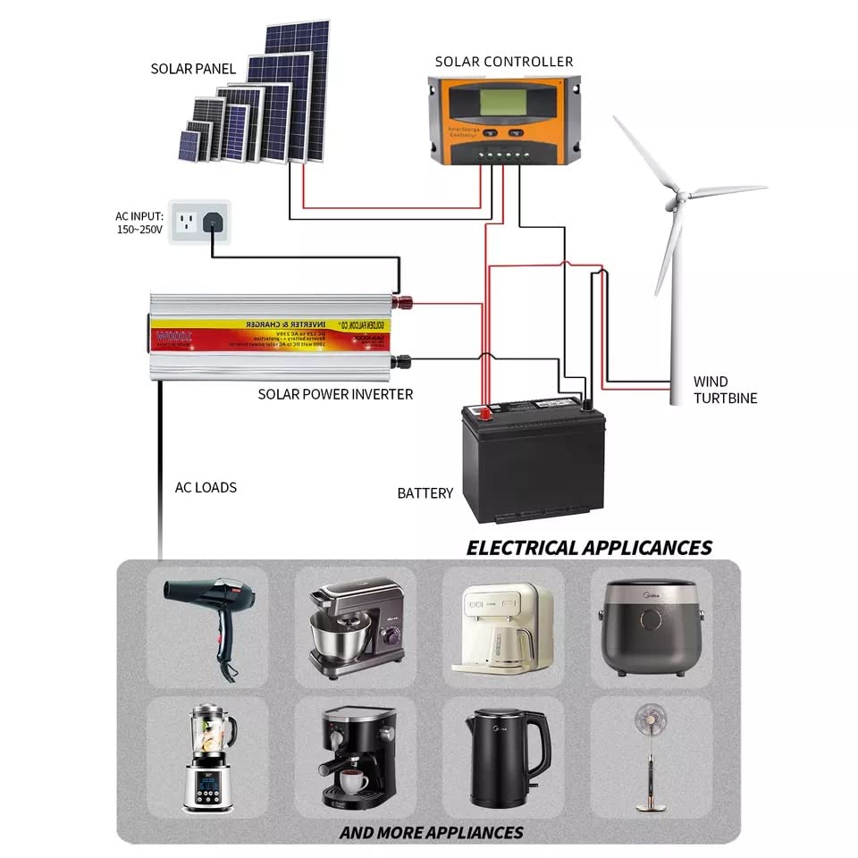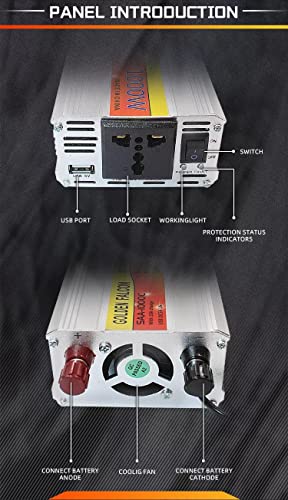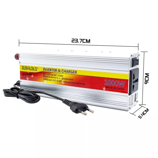 Generic - عاكس كهربائي وشاحن SAA-1000C 650 وات 12 فولت تيار مستمر الى 220 فولت تيار متردد وUSB 5 فولت