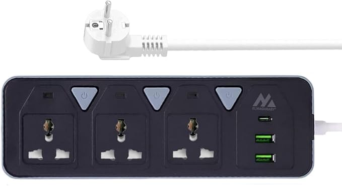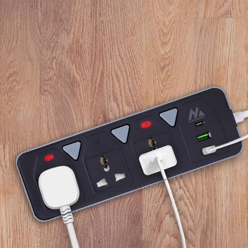 - قم بتشغيل العديد من الأجهزة باستخدام شريط الطاقة هذا بقدرة 2500 وات والذي يتميز بـ 3 منافذ ومنفذي USB ومنفذ واحد من النوع سي لشحن سريع وفعال.