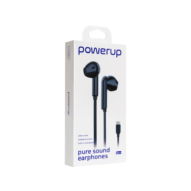 Powerup - سماعة أذن بيور ساوند مع موصل نوع سي من باور اب، أزرق