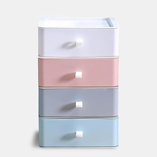 - عرض 3 قطع متنوعة: تأتي بألوان متعددة جذابة (أبيض، وردي، أزرق، رمادي) يمكن استخدامها منفردة أو تكديسها لتوفير المساحة