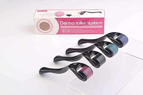 Derma - ديرما رولر فاخرة مع شنطة حمل مجانية، لنمط صلع الذكور، ومكافحة الشيخوخة، والسيلوليت والندوب وعلامات تمدد الجلد - 540 ابرة (0.5 ملم) - اسود