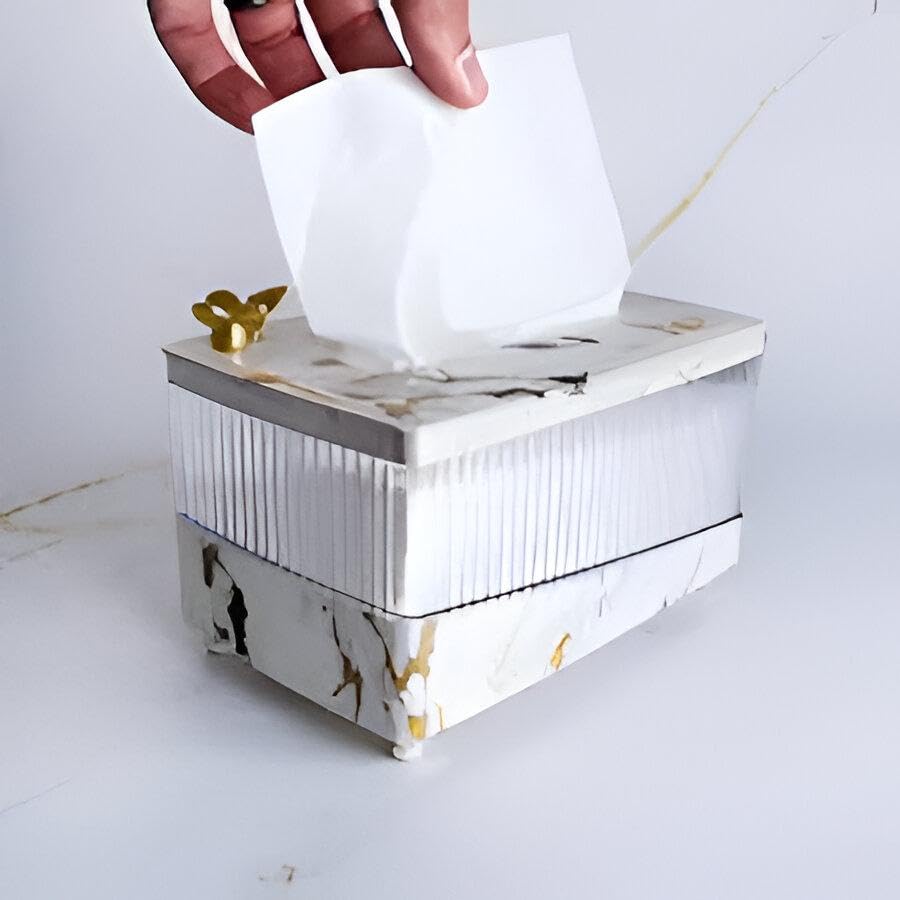 Generic - علبة مناديل فاخرة - مزينة بشكل ساحر بتفاصيل ذهبية واناقة فراشة، سعة واسعة 500 منديل مصنوعة من خشب الاكريليك المتين متعدد الالوان