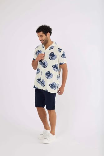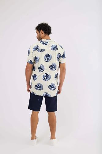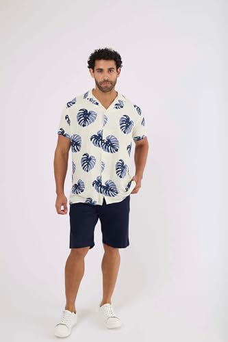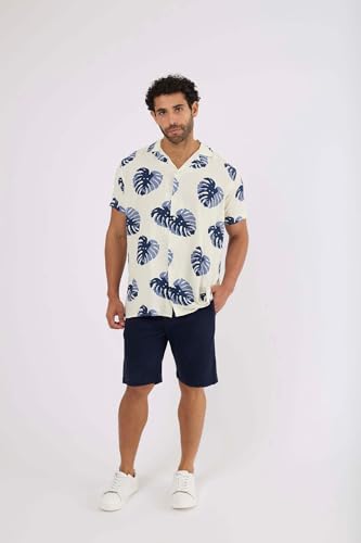 Premoda - قميص فسكوز بقصة عادية وأكمام قصيرة للرجال من بريمودا، لون أوف وايت، مقاس S
