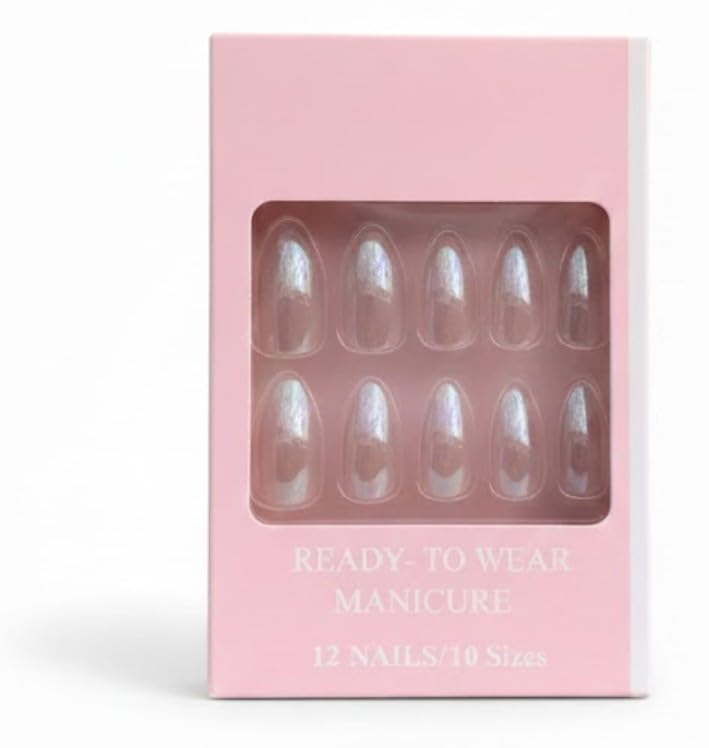 Generic - اظافر معدنية عاكسة بالضغط - 12 قطعة / 10 مقاسات متوسطة وطويلة - مسامير صناعية مثالية للحفلات، تأتي مع ورقة وجه مزدوجة - N03