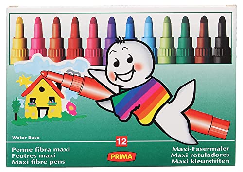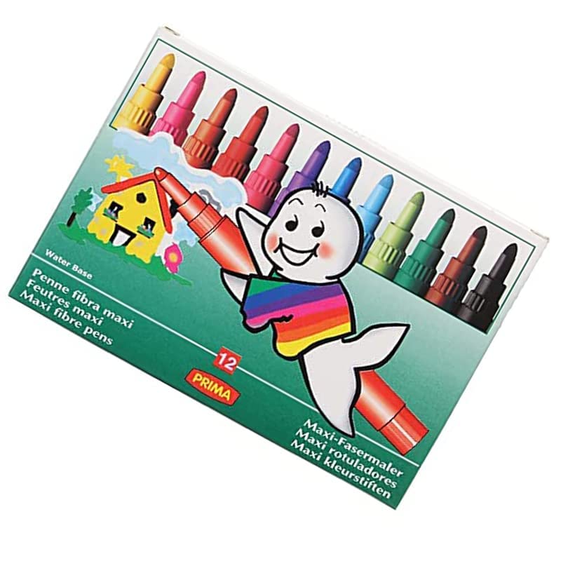 PRIMA - مجموعة أقلام ألوان ماكسي جامبو بسن فايبر من 12 قطعة من بريما