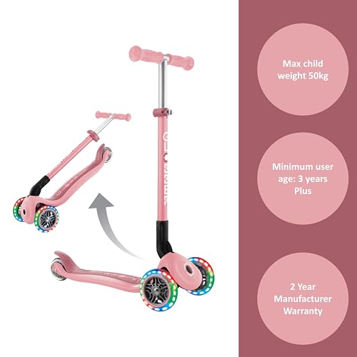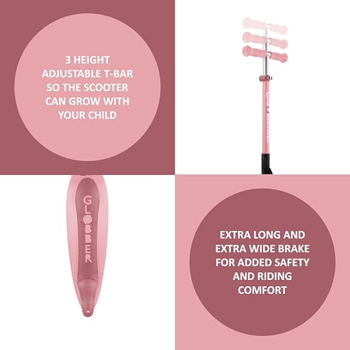 - تنمو مع طفلك، تتميز مصابيح جلوبر Primo القابلة للطي بقضيب على شكل حرف T قابل للتعديل بثلاثة ارتفاعات وتصميم بدون أدوات تمامًا، مما يعني أن السكوتر يمكن أن ينمو مع طفلك.