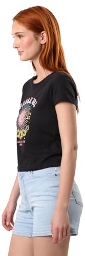 Ravin - ريفين تيشرت سهل الارتداء برقبة دائرية بدون طوق مطبوع عليه شمس للنساء، لون اسود