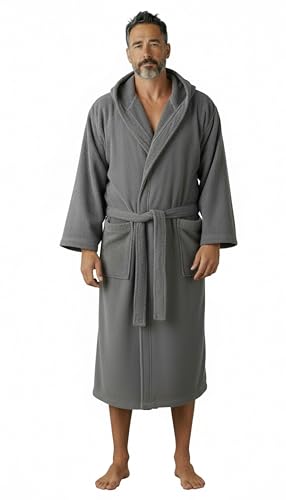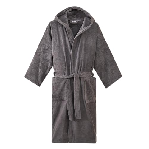 Printex.EG - روب حمام قطن رائع بغطاء للرأس للجنسين، فائق الامتصاص وناعم بجودة فندقية، تصميم عصري سادة من برينتكس اي جي (رمادي)