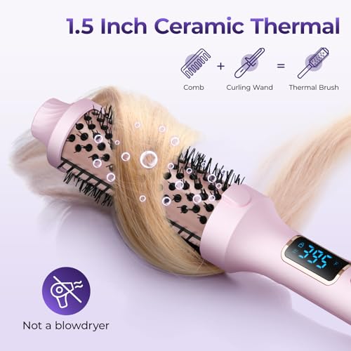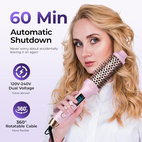 PRITECH - بريتيك فرشاة حرارية 1.5 انش، فرشاة دائرية ساخنة تخلق مظهر منفوخ، فرشاة مكواة تجعيد ايونية مع درجة حرارة قابلة للتعديل، اداة تصفيف الشعر بجهد مزدوج