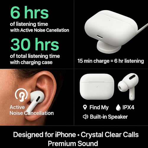 EVILL STOER - سماعات أذن لاسلكية برو 2 - 4 ميكروفونات بخاصية إلغاء الضوضاء، صوت عميق وواضح، بلوتوث 5.3، شحن سريع من نوع سي، تحكم باللمس، متوافقة مع آيفون وأندرويد