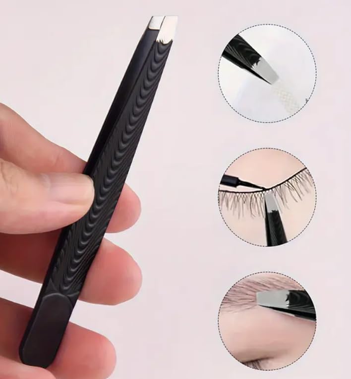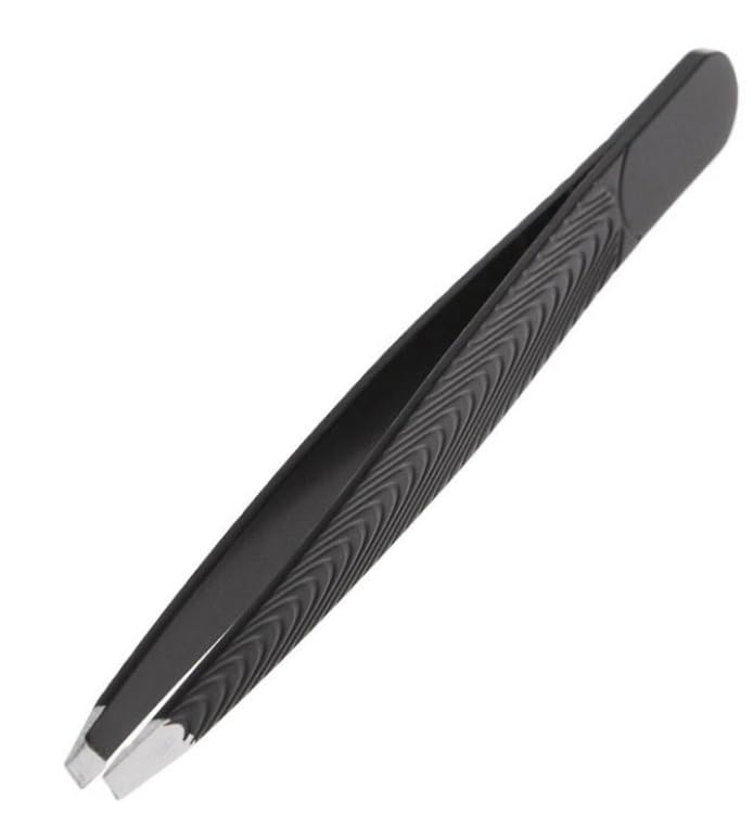 Generic - ملاقط حواجب احترافية من الفولاذ المقاوم للصدأ، مزودة بطرف مائل لسهولة نزع الشعر، فضي، أسود