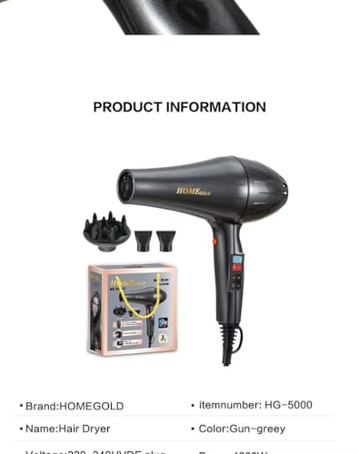 Generic - مجفف شعر احترافي 3000 وات - بإعدادات متعددة، عناية أيونية وحماية من الحرارة الزائدة HG-5000