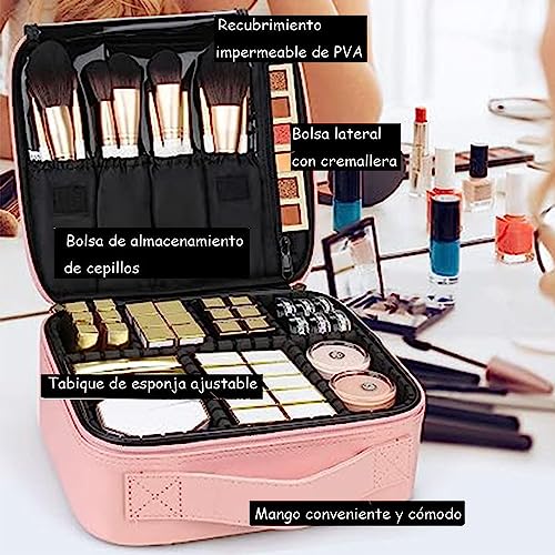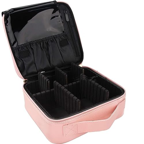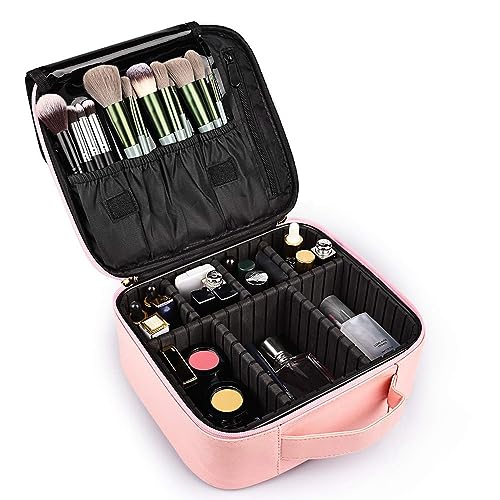RHESHIN - شنطة مكياج احترافية محمولة للسفر، شنطة مستحضرات تجميل مقاومة للماء مع فاصل قابل للتعديل مناسبة لمستحضرات التجميل وفرش المكياج (بينك)