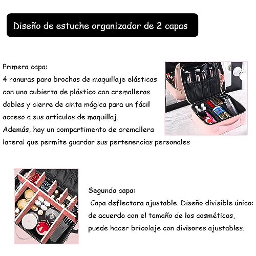 - 【أقسام مثالية】تتميز حقيبة مستحضرات التجميل المحمولة للسفر بمقبض مريح، يسهل حملها عند السفر، ولها سحاب مزدوج يمكن فتحه في كلا الاتجاهين. يمكن للجزء الداخلي أيضًا أن تصنعه بنفسك في الحجرة الداخلية عن طريق ضبط القسم المبطن، مع توفير مساحة خاصة لفرشاة المكياج للحفاظ على مستحضرات التجميل الخاصة بك منظمة بشكل أنيق.