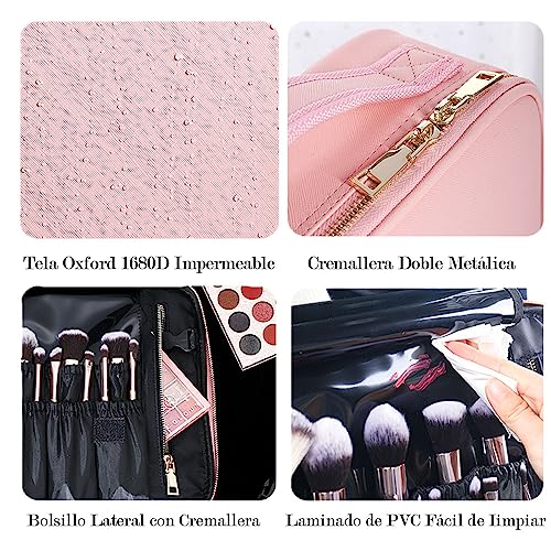 - 💦【مادة مقاومة للماء】مصنوعة من جلد أكسفورد الفاخر، حقيبة مستحضرات التجميل هذه متينة ومقاومة للماء والصدمات ومقاومة للاهتراء وسهلة التنظيف. الجزء الداخلي من حقيبة مستحضرات التجميل للسفر مصنوع من قماش اوكسفورد عالي الكثافة ولوح صلب إسفنجي وسحاب قوي وغطاء شفاف لفرش المكياج.