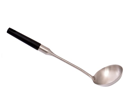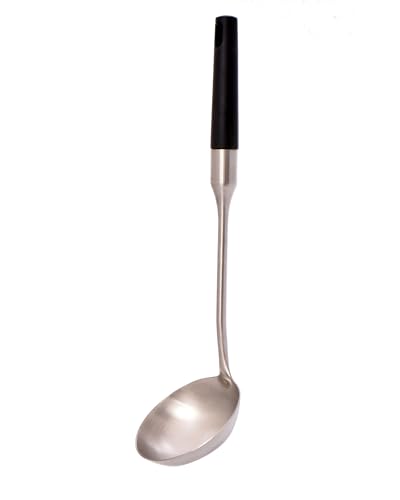 Generic - مغرفة تقديم احترافية من الستانلس ستيل بمقبض اسود، ملعقة مطبخ طويلة