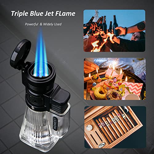 PROMISE - بروميس ولاعة شعلة سيجار ثلاثية الشعلة النفاثة قابلة لاعادة الملء، ادوات بوتان للرجال - افكار هدايا (ابيض-سي)